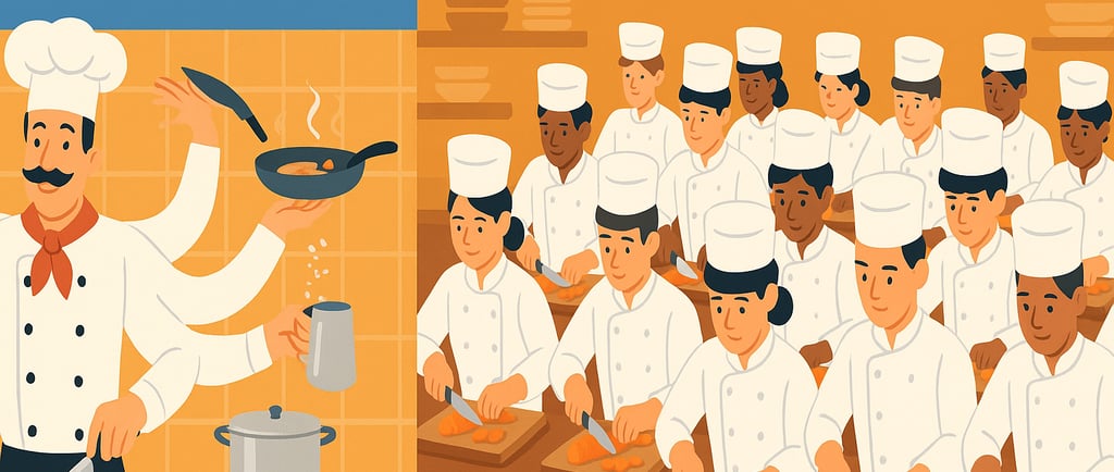 Now picture hundreds of junior cooks, each trained to do just one simple chopping motion. They can’t fry or plate, but if you give them a mountain of carrots they’ll finish the job in seconds.