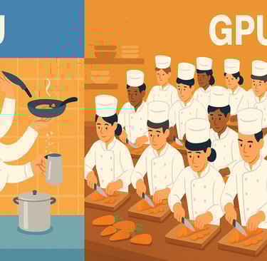 In machine learning, “carrots” are the tiny math operations (add, multiply) that turn data and model weights into predictions. When your recipe needs millions of identical chops at once—think image classification or large language models—the GPU wins. When your dish involves lots of different steps—loading data, cleaning text, running small models—the CPU often holds its own.